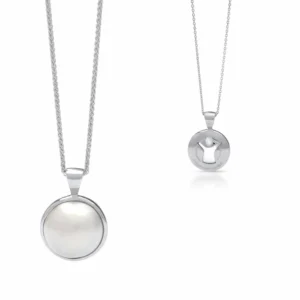 At the heart of this piece is a Cygnet Bay grown 15mm B grade Australian South Sea Mabe pearl. The pearl is set in sterling silver with a smooth bezel that frames its dome. The profile sits neatly on the chest, offering a balanced, easy-to-wear silhouette that suits many necklines.
